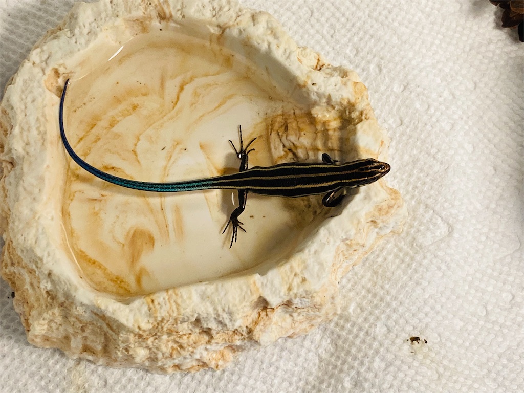小さいヒガシニホントカゲ この日は何度も水皿の水に浸かったり身体を干したりを繰り返していた 次の脱皮が近いのかな?