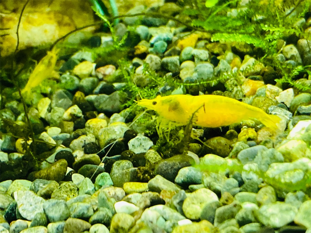 抱卵している黄色いチェリーシュリンプ🍒🦐